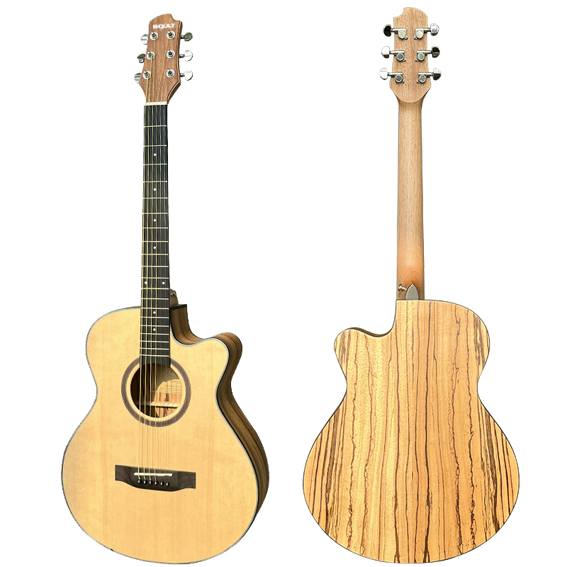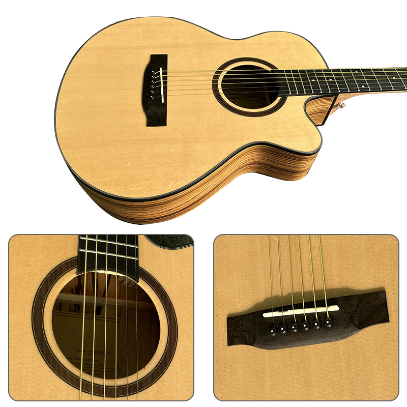 Cutaway OM Style Zebra Solid Spruce Top Acoustic Guitar