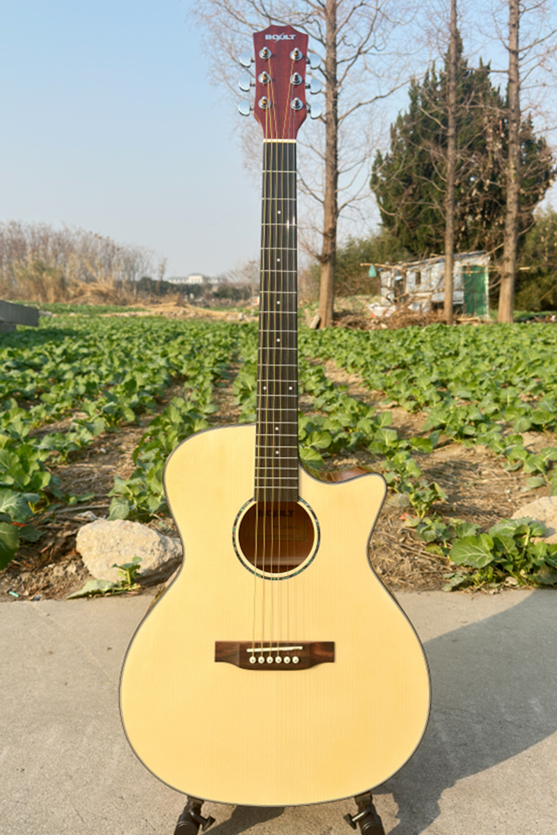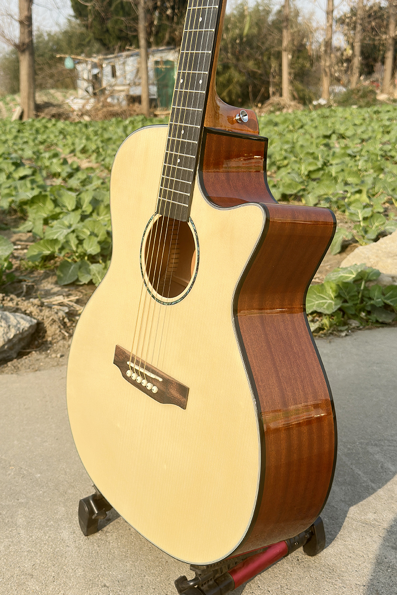 Plywood Spruce Sapele Body Glossy OM Cutaway Acoustic Guitar SKU: SG01SMC-40 Category: Guitar Tag: boult acoustic guitar Spread the love Description Description Model:SG01SMC-40G 40 Inch OM style cutaway Acoustic Guitar Specifications: Top: Plywood Spruce Back & Side: Laminated Mahogany Fingerboard and Bridge: Black Richlited Binding : Black ABS with Lines Rosette : Colour Pearl Nut and saddle :Compensated Style ,ABS Finish : Glossy Machine Head: Chome machine head Related products 40 Inch GA Body Solid Spruce Top Acoustic Guitar Read more Cutaway OM Style Zebra Solid Spruce Top Acoustic Guitar Read more Dreadnought Solid Spruce Top Acoustic Guitar Read more Sky Blue Color Strato Electric Guitar Read more